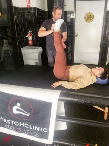 As a certified flexibility coach, I provide one-on-one stretch sessions in a remote area of Gold's Gym Venice, using a table specifically designed for assisted stretching.